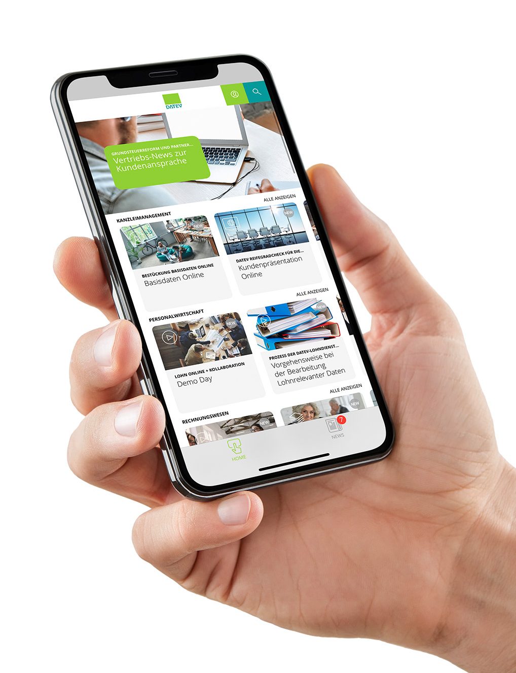 DATEV was faced with the challenge of providing the 650 field staff, who rarely have access to a fixed PC at their workplace, with knowledge and learning units to convey up-to-date information and sales know-how.
